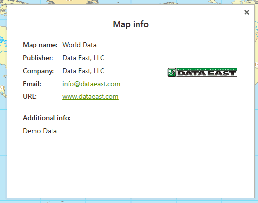 The window showing information about this map – publisher name, company, website, etc. will appear.