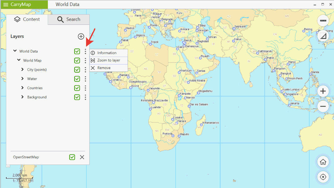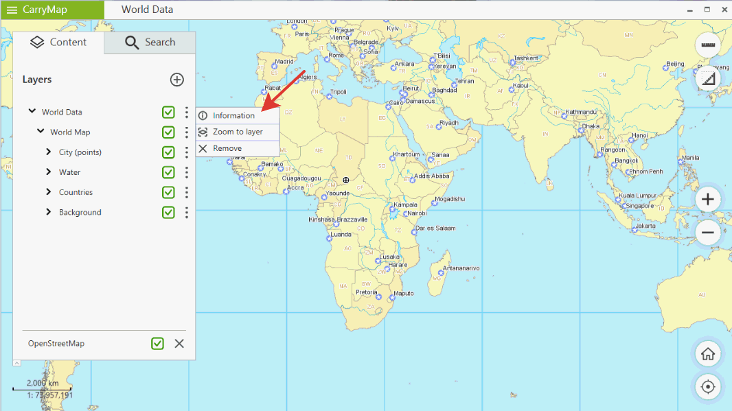 1) Click context menu button of the map you want to know more about in the Content panel.