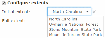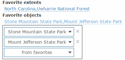 Favorite extents – to create the non-editable list of favorite extents that will be displayed in the map, press Not specified and create your favorite extents list from the previously saved extents.