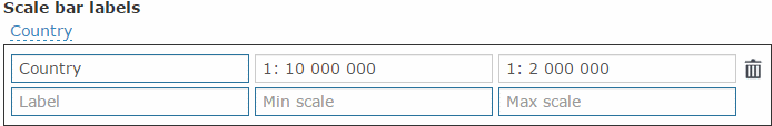 Scale bar labels – the labels that will be used for different scales on the scale bar. To add new label or edit the existing list of labels, press the label list button. Enter the label text that will be displayed on the scale bar to the Label field, and specify the minimal and maximal scales values for this text in the appropriate fields.