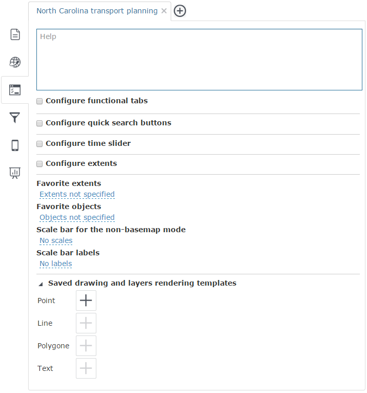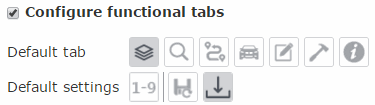 Configure sidebar – check this box to configure the sidebar appearance that will be shown by loading the map. To specify the default tab press needed button. Specify default settings: