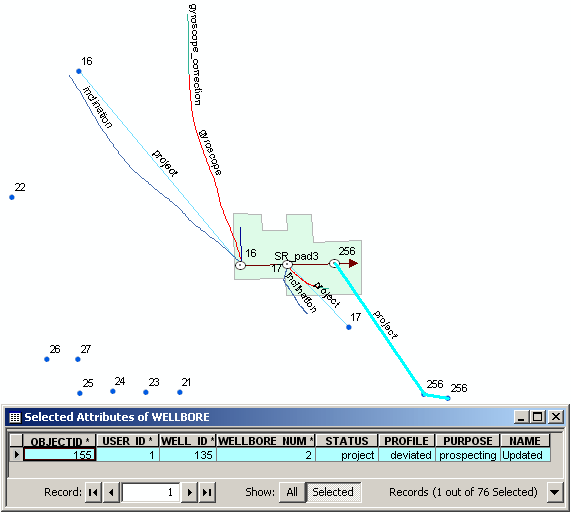 The vertical well profile has been changed to the deviated with two target-points having entries to the different formations. The wellbore purpose and its name have been also updated. All parameters changes have been added to the appropriate attribute tables (TARGET_POINT, WELL) and to the WELLBORE table too.