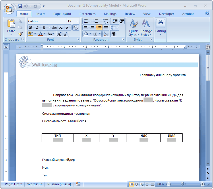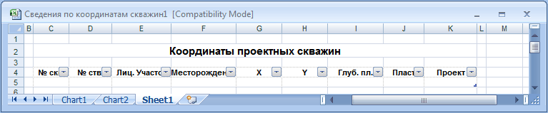 xlt -шаблон отчета "Сведения по координатам скважин"