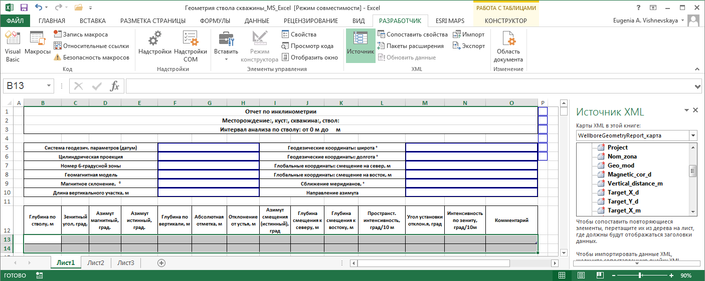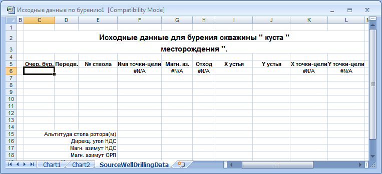 xlt -шаблон отчета "Исходные данные по бурению скважины"