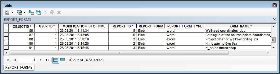 Вся информация о текущем состоянии форм отчетов в базе данных WellTracking отражается в таблице REPORT_FORMS.