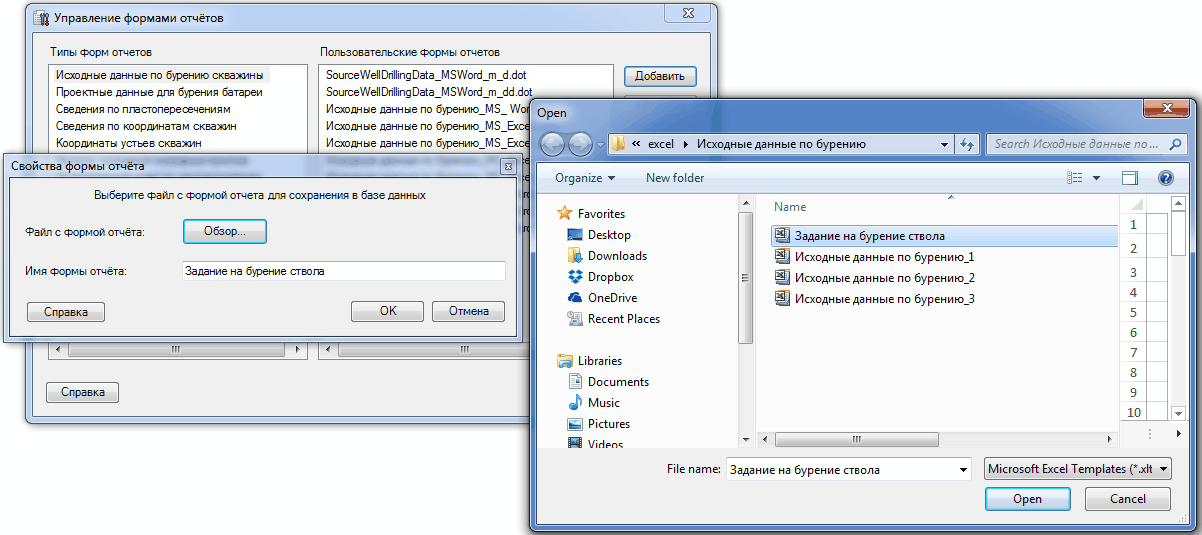 Этот инструмент загружает в базу данных шаблоны отчетов в *.xlt и *.dot для последующего формирования следующих типов отчетов: Сведения по координатам скважин, Сведения по пластопересечениям, Исходные данные по бурению скважины, Координаты устьев скважин, Предварительные данные по кусту, Проектные данные для бурения батареи, Каталог координат исходных пунктов, Геометрия ствола скважины , а также Экспорт в геологические пакеты.