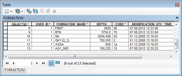 Диалоговое окно Редактирование пластов заполняется автоматически из базы геоданных.