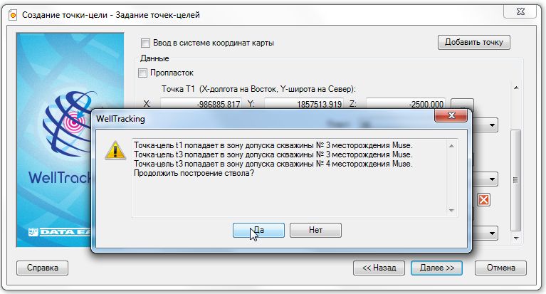 Чтобы продолжить построение точки-цели, нажмите кнопку Далее.