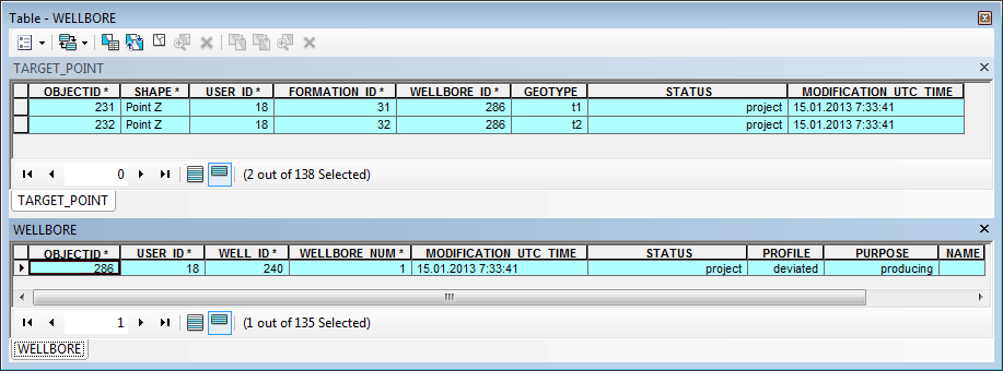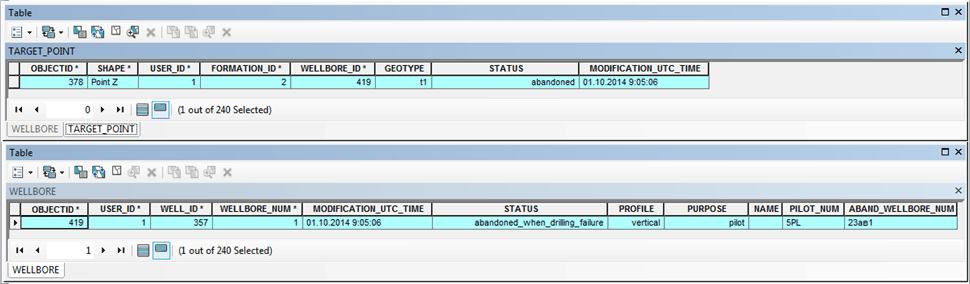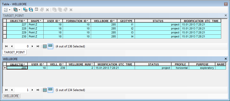 На выбранном месторождении появятся новые скважины, а атрибутивные таблицы слоя точек-целей TARGET_POINT и стволов WELLBORE пополнятся строками с параметрами, соответствующими заданным точкам.