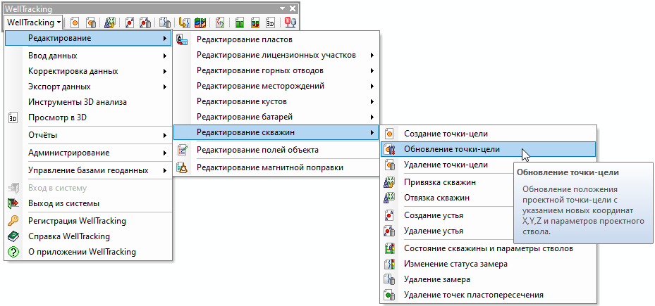 Инструмент Обновление точки-цели