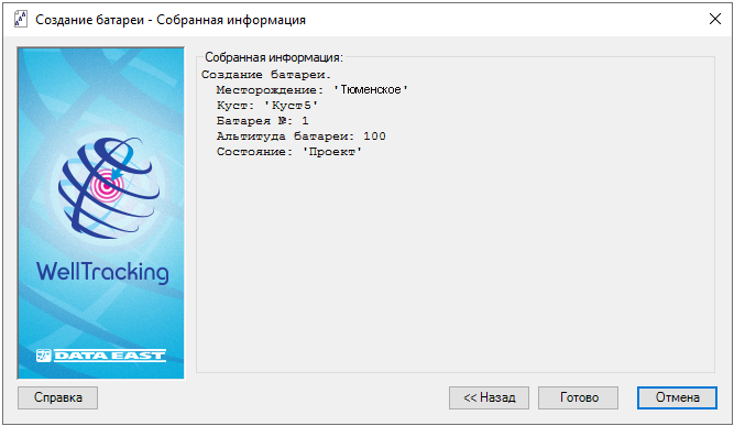 Нажатием на кнопку Готово запустится процесс построения батареи вашего месторождения. После его завершения Приложение выдаст окно с соответствующим сообщением.