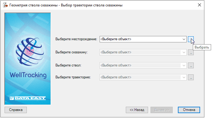 На данном шаге пользователю нужно из базы данных выбрать траекторию ствола скважины, по которой будет строиться отчет.