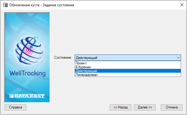 Укажите текущее состояние редактируемого куста, выбрав необходимый тип из предлагаемого списка.