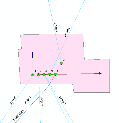 Ниже представлен результат работы инструмента Удаление устья: было удалено последнее на батарее устье скважины №9. Скважина №9 вместе с проектным стволом переместилась в точку привязки к кустовой площадке.