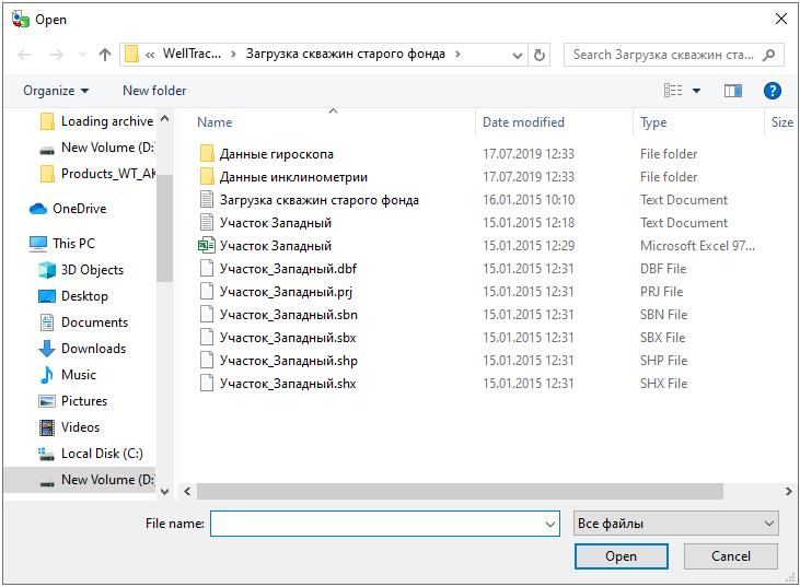 Файл с номерами скважин и координатами устьев вводится через опцию Выбрать, открывающей стандартное окно Open.