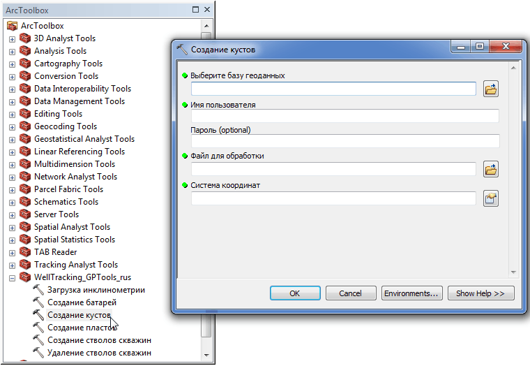 Выберите базу геоданных. По умолчанию будет указан путь к активной БГД, в которую был осуществлен последний вход. Если вы находитесь в системе WellTracking, то путь к базе заполнится автоматически.