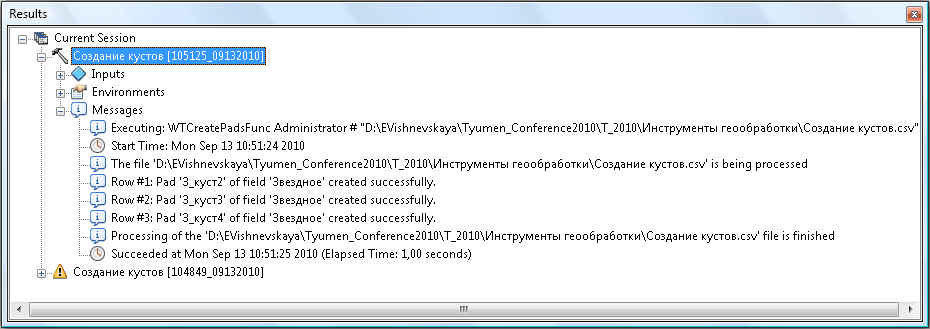 Нажмите на кнопку ОК диалога и запустите процесс создания кустов в проекте. В окне состояния будет указан перечень различных ошибок, выявленных Приложением во время работы.