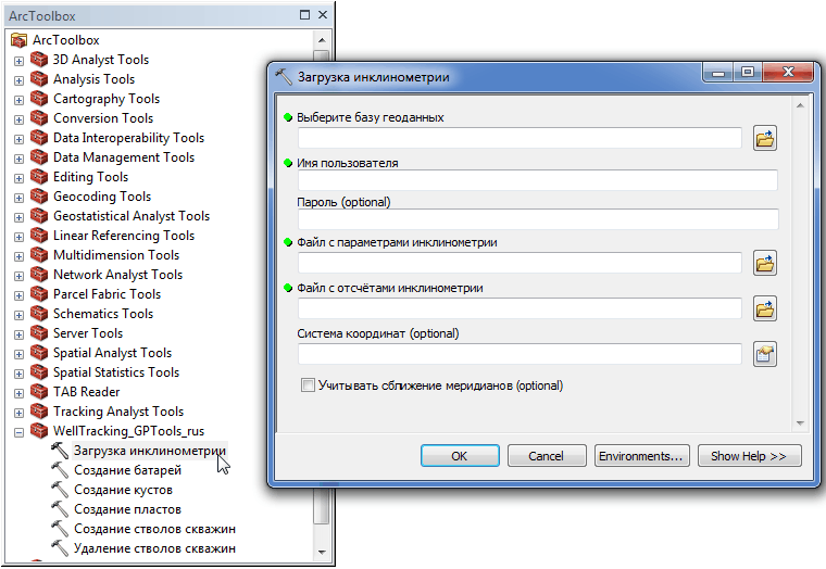 Для того, чтобы ввести в базу данных текстовую информацию о данных инклинометрии построить по ней траектории стволов, нужно заполнить следующее диалоговое окно.